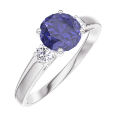 « L'ATELIER » NR. 166024Ring Witgoud 9 karaat - Blauwe saffier rond 0.7 Karaat - Aanleunende edelstenen Diamant 4.9
