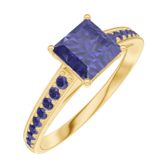 « L'ATELIER » NR. 166114Ring Geelgoud 9 karaat - Blauwe saffier Prinses 0.7 Karaat - Setting Blauwe saffier