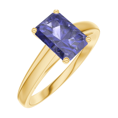 « L'ATELIER » NR. 166201Ring Geelgoud 18 karaat - Blauwe saffier Rechthoekig 0.7 Karaat