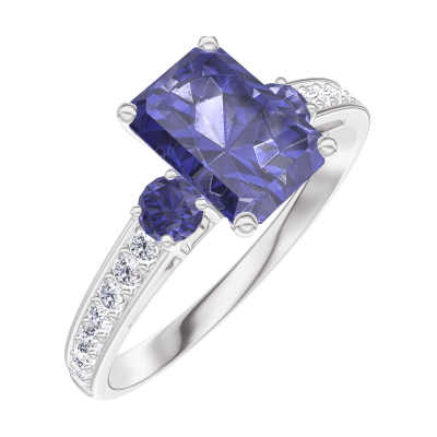 « L'ATELIER » NR. 166267Ring Witgoud 18 karaat - Blauwe saffier Rechthoekig 0.7 Karaat - Aanleunende edelstenen Blauwe saffier - Setting Diamant