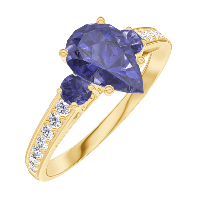 « L'ATELIER » Nº166465Ring Geelgoud 18 karaat - Blauwe saffier Peer 0.7 Karaat - Aanleunende edelstenen Blauwe saffier - Setting Diamant