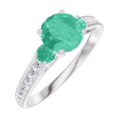 « L'ATELIER » Nº166687Ring Witgoud 18 karaat - Smaragd rond 0.7 Karaat - Aanleunende edelstenen Smaragd - Setting Diamant 5