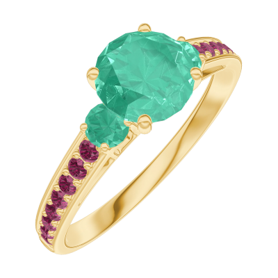 « L'ATELIER » NR. 166689Ring Geelgoud 18 karaat - Smaragd rond 0.7 Karaat - Aanleunende edelstenen Smaragd - Setting Robijn 4.9 (7)