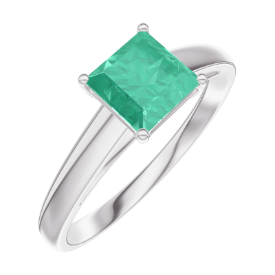 « L'ATELIER » NR. 166704Ring Witgoud 9 karaat - Smaragd Prinses 0.7 Karaat