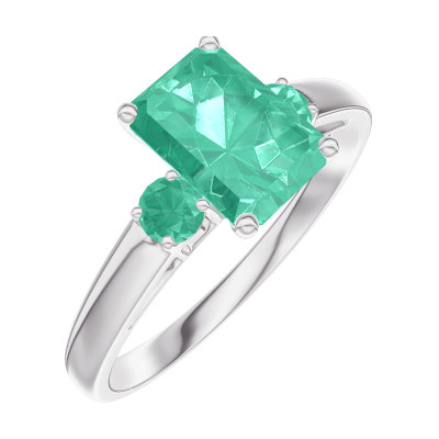 « L'ATELIER » Nº166884Ring Witgoud 9 karaat - Smaragd Rechthoekig 0.7 Karaat - Aanleunende edelstenen Smaragd