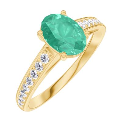 « L'ATELIER » Nº166905Ring Geelgoud 18 karaat - Smaragd Ovaal 0.7 Karaat - Setting Diamant