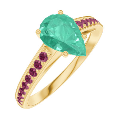 « L'ATELIER » Nº167010Ring Geelgoud 9 karaat - Smaragd Peer 0.7 Karaat - Setting Robijn