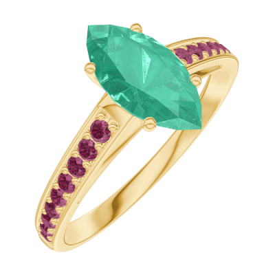 « L'ATELIER » Nº167110Ring Geelgoud 9 karaat - Smaragd Markies 0.7 Karaat - Setting Robijn
