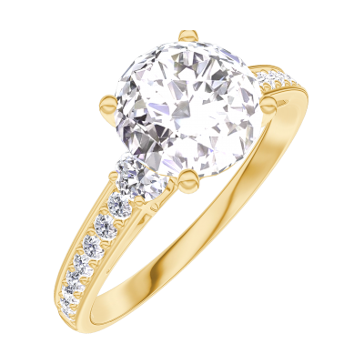 « L'ATELIER » NR. 167226Ring Geelgoud 9 karaat - Diamant rond 1 Karaat - Aanleunende edelstenen Diamant - Setting Diamant 4.8
