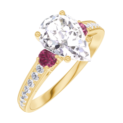 Ring Geelgoud 18 karaat - Diamant Peer 1 Karaat - Aanleunende edelstenen Robijn - Setting Diamant