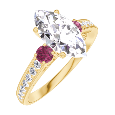 « L'ATELIER » Nº167746Ring Geelgoud 9 karaat - Diamant Markies 1 Karaat - Aanleunende edelstenen Robijn - Setting Diamant