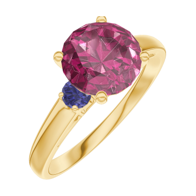 « L'ATELIER » NR. 167861Ring Geelgoud 18 karaat - Robijn rond 1 Karaat - Aanleunende edelstenen Blauwe saffier 4.8