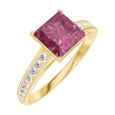 « L'ATELIER » NR. 167905Ring Geelgoud 18 karaat - Robijn Prinses 1 Karaat - Setting Diamant
