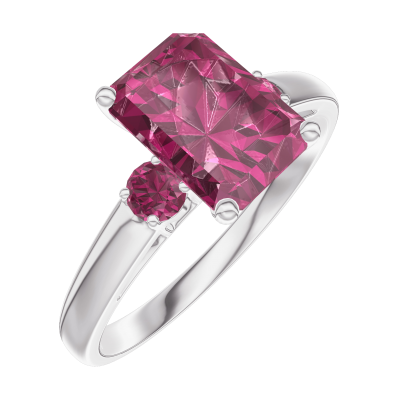 « L'ATELIER » NR. 168043Ring Witgoud 18 karaat - Robijn Rechthoekig 1 Karaat - Aanleunende edelstenen Robijn 4.6