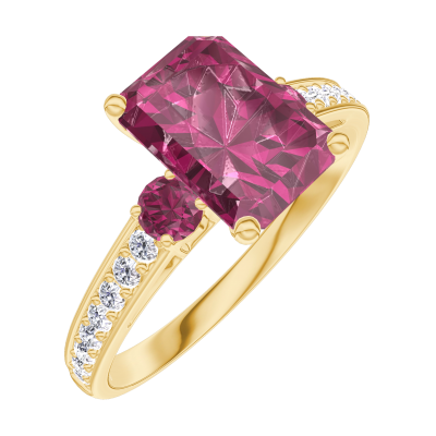 « L'ATELIER » NR. 168045Ring Geelgoud 18 karaat - Robijn Rechthoekig 1 Karaat - Aanleunende edelstenen Robijn - Setting Diamant 4.6
