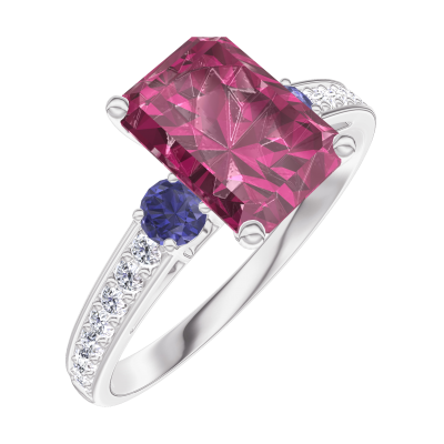 « L'ATELIER » NR. 168067Ring Witgoud 18 karaat - Robijn Rechthoekig 1 Karaat - Aanleunende edelstenen Blauwe saffier - Setting Diamant 4.6