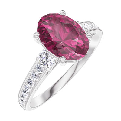 « L'ATELIER » NR. 168128Ring Witgoud 9 karaat - Robijn Ovaal 1 Karaat - Aanleunende edelstenen Diamant - Setting Diamant 4.7