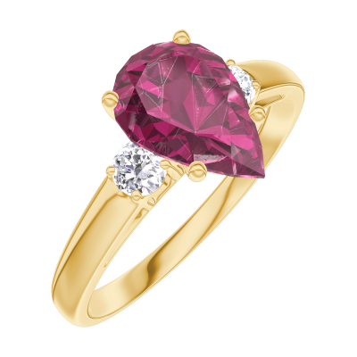 « L'ATELIER » NR. 168222Ring Geelgoud 9 karaat - Robijn Peer 1 Karaat - Aanleunende edelstenen Diamant