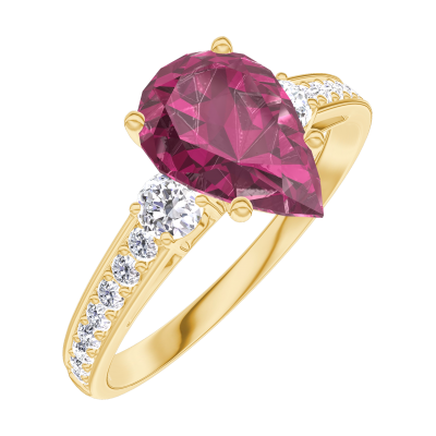 « L'ATELIER » Nº168226Ring Geelgoud 9 karaat - Robijn Peer 1 Karaat - Aanleunende edelstenen Diamant - Setting Diamant