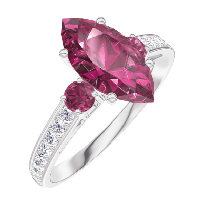 « L'ATELIER » NR. 168347Ring Witgoud 18 karaat - Robijn Markies 1 Karaat - Aanleunende edelstenen Robijn - Setting Diamant