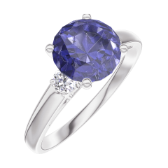 « L'ATELIER » NR. 168424Ring Witgoud 9 karaat - Blauwe saffier rond 1 Karaat - Aanleunende edelstenen Diamant 4.7