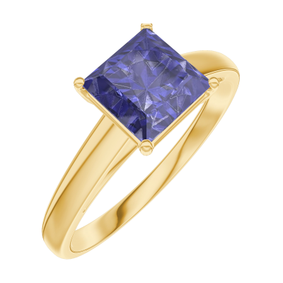 « L'ATELIER » Nº168501Ring Geelgoud 18 karaat - Blauwe saffier Prinses 1 Karaat