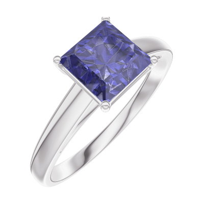 « L'ATELIER » NR. 168504Ring Witgoud 9 karaat - Blauwe saffier Prinses 1 Karaat