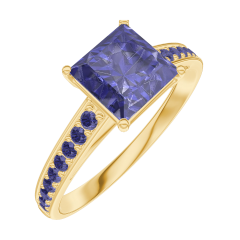 « L'ATELIER » NR. 168514Ring Geelgoud 9 karaat - Blauwe saffier Prinses 1 Karaat - Setting Blauwe saffier