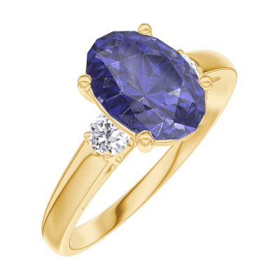 « L'ATELIER » Nº168721Ring Geelgoud 18 karaat - Blauwe saffier Ovaal 1 Karaat - Aanleunende edelstenen Diamant 4.7