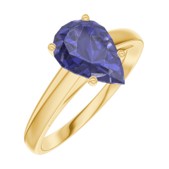 « L'ATELIER » NR. 168801Ring Geelgoud 18 karaat - Blauwe saffier Peer 1 Karaat