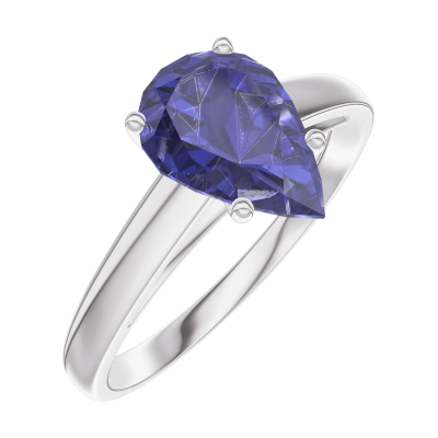 « L'ATELIER » NR. 168804Ring Witgoud 9 karaat - Blauwe saffier Peer 1 Karaat
