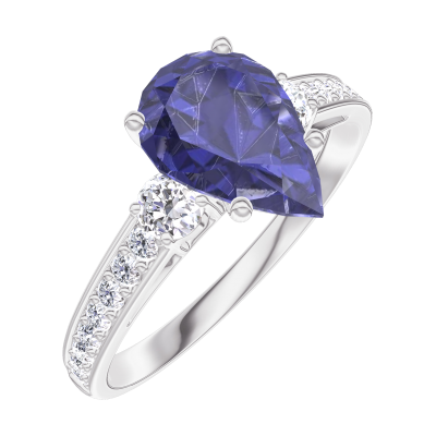 « L'ATELIER » NR. 168827Ring Witgoud 18 karaat - Blauwe saffier Peer 1 Karaat - Aanleunende edelstenen Diamant - Setting Diamant