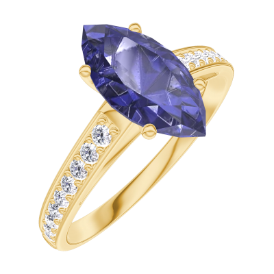 « L'ATELIER » Nº168906Ring Geelgoud 9 karaat - Blauwe saffier Markies 1 Karaat - Setting Diamant
