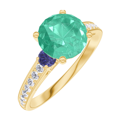 « L'ATELIER » NR. 169065Ring Geelgoud 18 karaat - Smaragd rond 1 Karaat - Aanleunende edelstenen Blauwe saffier - Setting Diamant 4.8