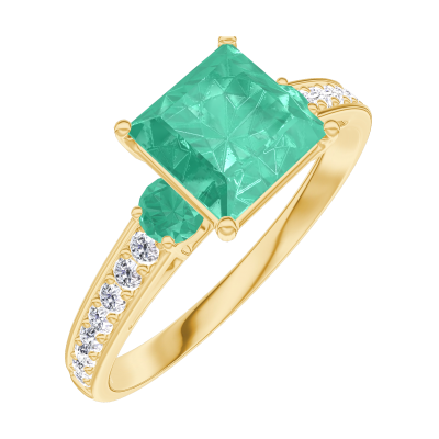 « L'ATELIER » Nº169186Ring Geelgoud 9 karaat - Smaragd Prinses 1 Karaat - Aanleunende edelstenen Smaragd - Setting Diamant