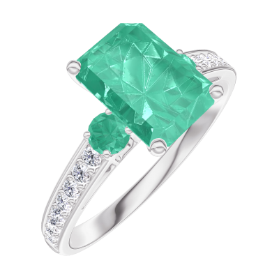 « L'ATELIER » Nº169288Ring Witgoud 9 karaat - Smaragd Rechthoekig 1 Karaat - Aanleunende edelstenen Smaragd - Setting Diamant 4.6