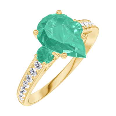 « L'ATELIER » NR. 169485Ring Geelgoud 18 karaat - Smaragd Peer 1 Karaat - Aanleunende edelstenen Smaragd - Setting Diamant