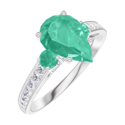 « L'ATELIER » Nº169488Ring Witgoud 9 karaat - Smaragd Peer 1 Karaat - Aanleunende edelstenen Smaragd - Setting Diamant