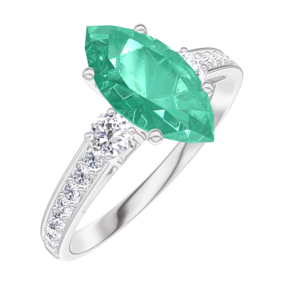 « L'ATELIER » NR. 169528Ring Witgoud 9 karaat - Smaragd Markies 1 Karaat - Aanleunende edelstenen Diamant - Setting Diamant