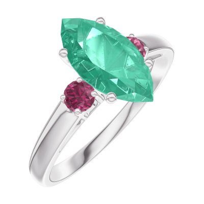 « L'ATELIER » NR. 169544Ring Witgoud 9 karaat - Smaragd Markies 1 Karaat - Aanleunende edelstenen Robijn