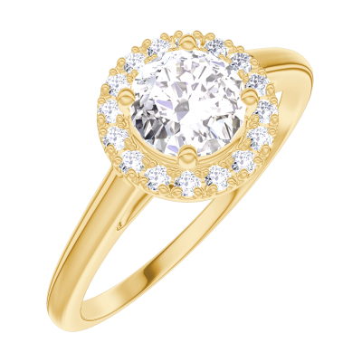 « L'ATELIER » NR. 170001Ring Geelgoud 18 karaat - Diamant rond 0.5 Karaat - Halo Diamant 4.7