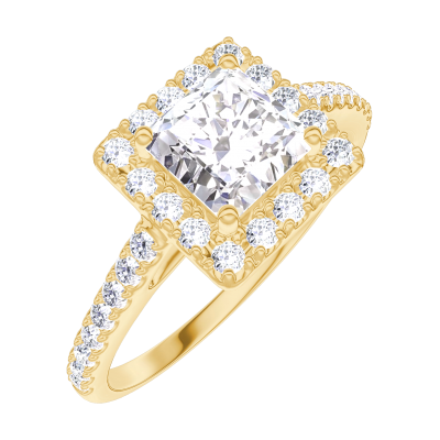 « L'ATELIER » NR. 170054Ring Geelgoud 9 karaat - Diamant Prinses 0.5 Karaat - Halo Diamant - Setting Diamant 4.1