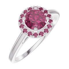 « L'ATELIER » NR. 170307Ring Witgoud 18 karaat - Robijn Rond 0.5 Karaat - Halo Robijn 4.7