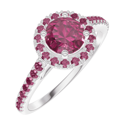 « L'ATELIER » Nº170315Ring Witgoud 18 karaat - Robijn rond 0.5 Karaat - Halo Robijn - Setting Robijn 4.7