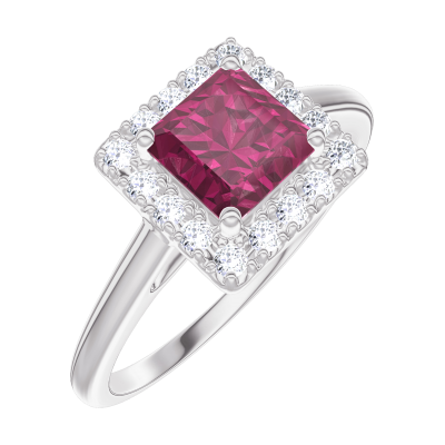 « L'ATELIER » NR. 170339Ring Witgoud 18 karaat - Robijn Prinses 0.5 Karaat - Halo Diamant 4.1 (10)