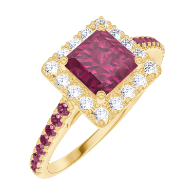 « L'ATELIER » NR. 170346Ring Geelgoud 9 karaat - Robijn Prinses 0.5 Karaat - Halo Diamant - Setting Robijn 4.1 (10)
