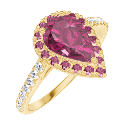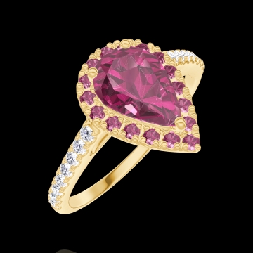 « L'ATELIER » Nº170501Ring Geelgoud 18 karaat - Robijn Peer 0.5 Karaat - Halo Robijn - Setting Diamant 4.8 (13)