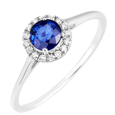 « L'ATELIER » NR. 170580Ring Witgoud 9 karaat - Blauwe saffier rond 0.5 Karaat - Halo Diamant 4.7