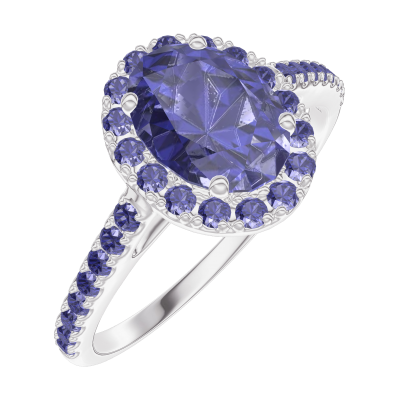 « L'ATELIER » Nº170768Ring Witgoud 9 karaat - Blauwe saffier Ovaal 0.5 Karaat - Halo Blauwe saffier - Setting Blauwe saffier 4.5