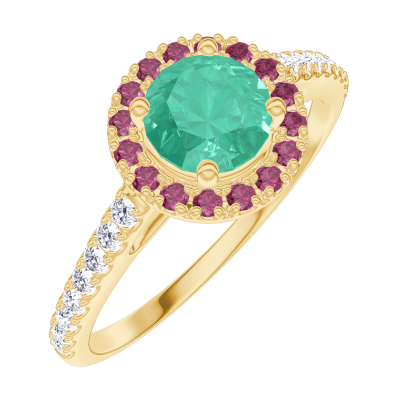 « L'ATELIER » NR. 170886Ring Geelgoud 9 karaat - Smaragd rond 0.5 Karaat - Halo Robijn - Setting Diamant 4.7